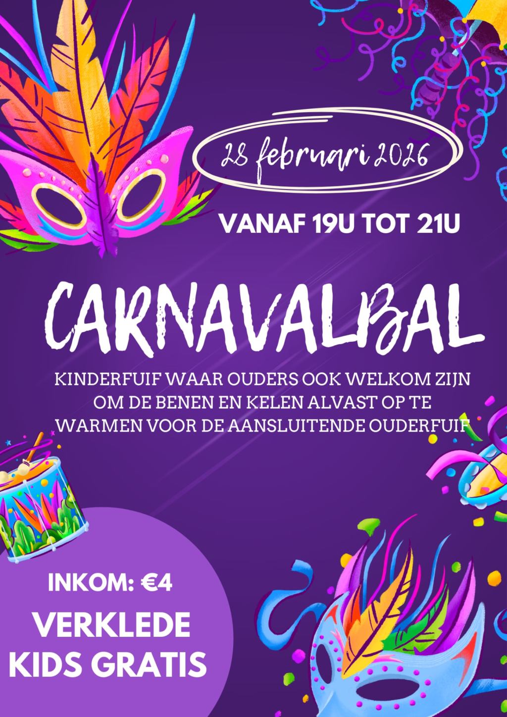 Het carnavalbal start om 19u en de kids die verkleed zijn mogen gratis binnen!